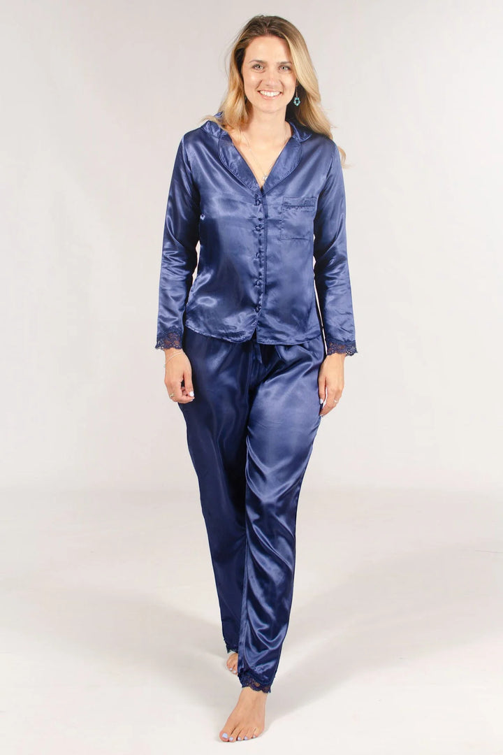 Experience the luxurious comfort of our Satin Pyjama Set. Made with sumptuous soft satin fabric, this exquisite set will make your evenings and mornings feel like a dream. With a gorgeous lace trim detail.