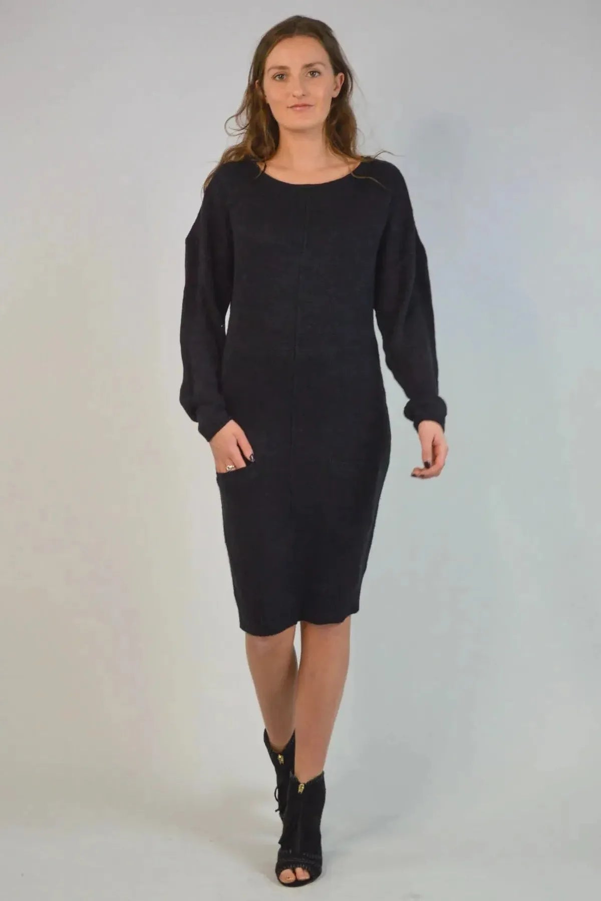 Wear as a shorter dress or long tunic jumper. Exposed Seam and Patch Pockets at Front.