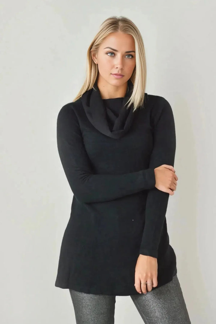 Comfortable and Stylish Cowl Neck over Super Soft Knit Swing Shaped Jumper with fitted Sleeve, this will become your favourite top this winter.