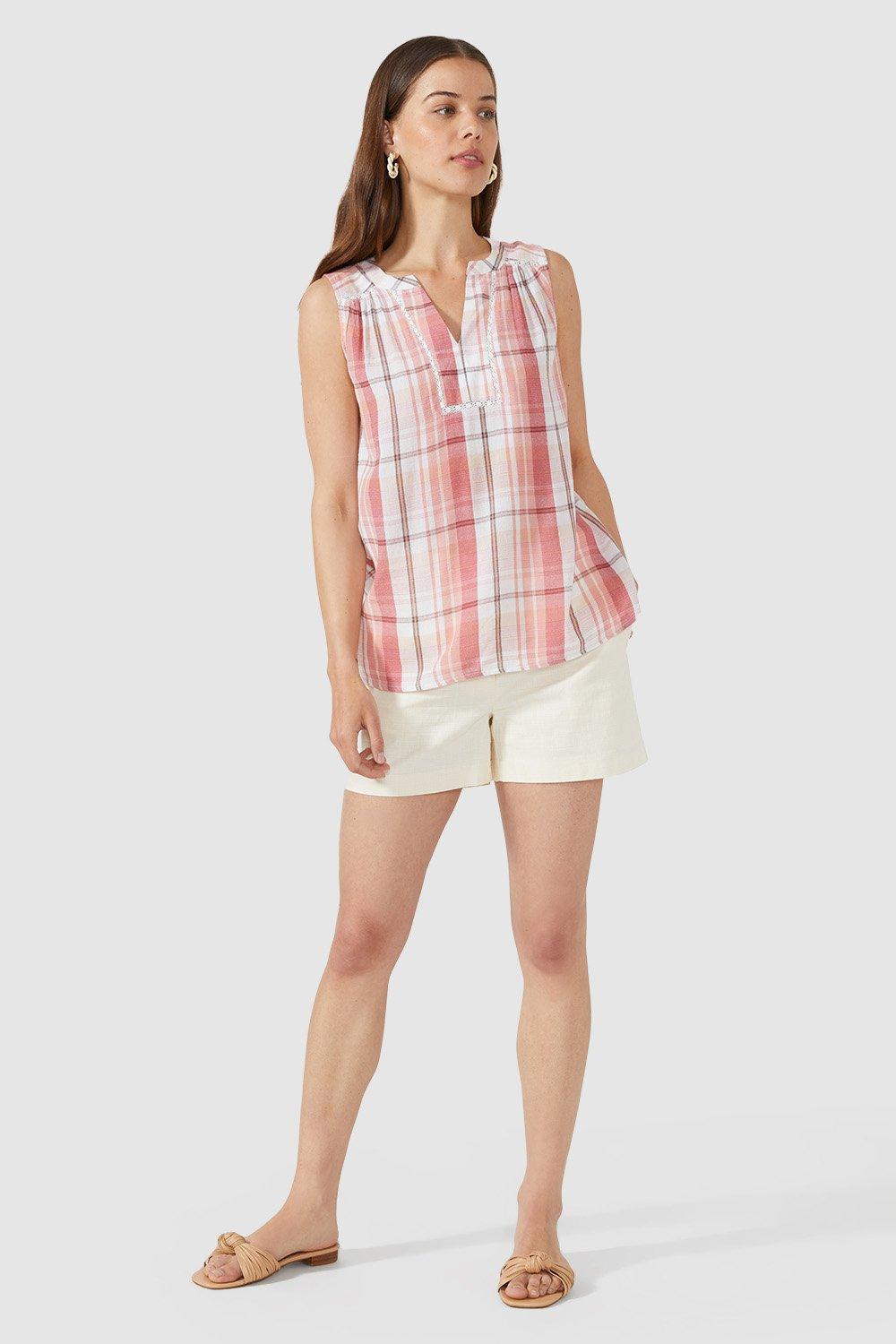 Sleeveless check top from Maine. Designed for carefree summer days, this relaxed-fit top is made from a ligthweight check fabric for a fresh all day feel. Wear it with shorts and flat sandals for a trip to the beach, or with linen trousers and trainers for the city.