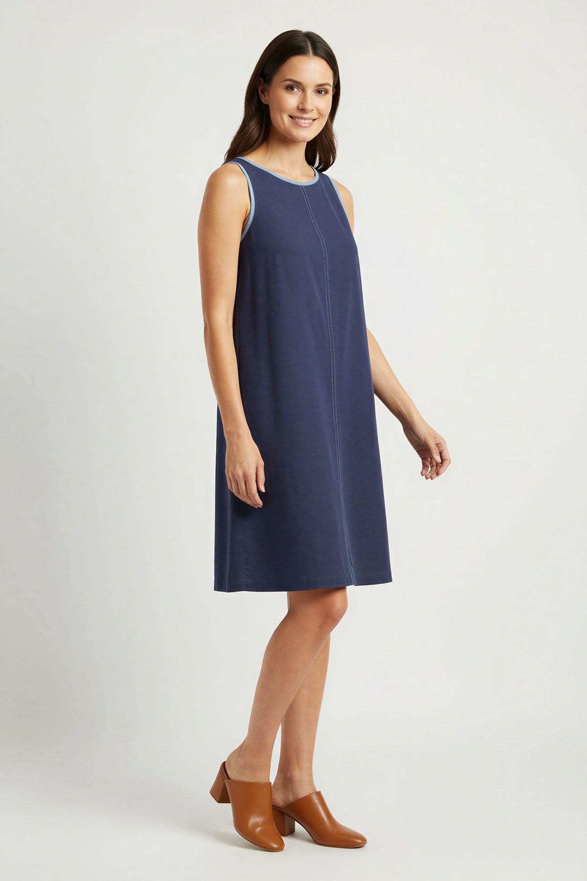 Navy Sleeveless Linen Shift Dress
