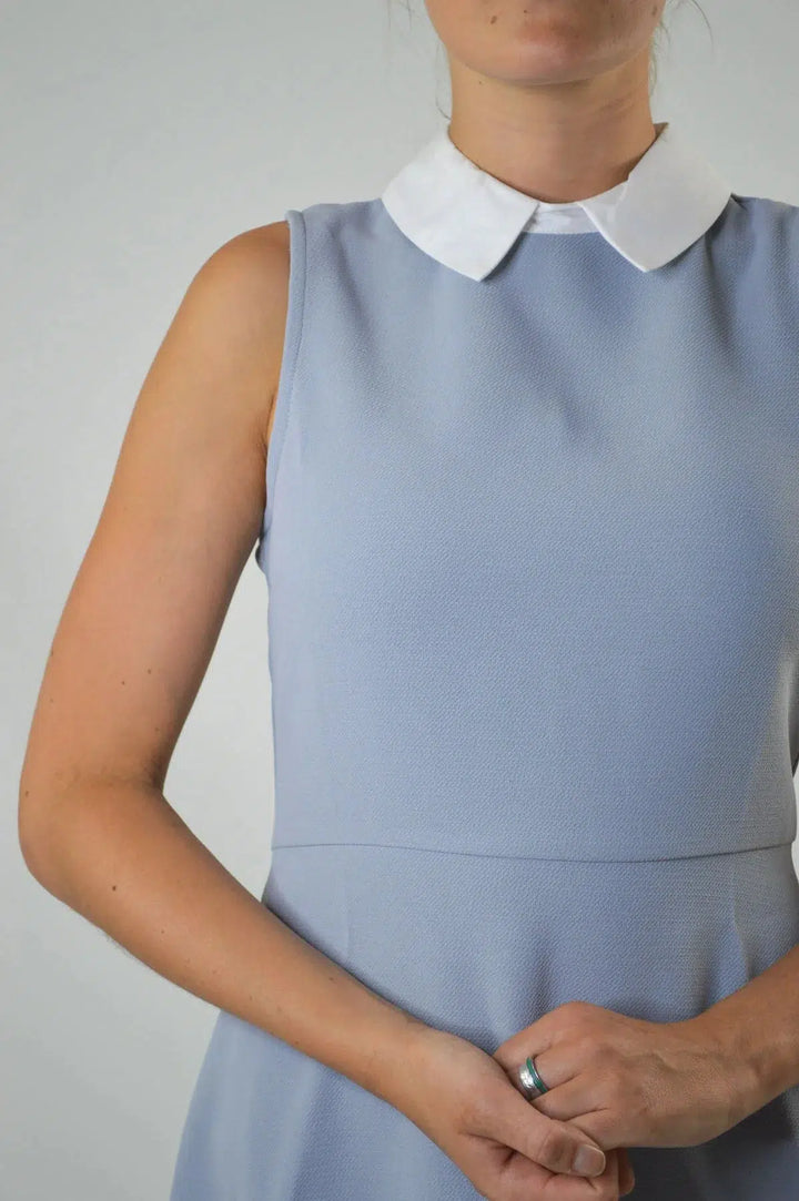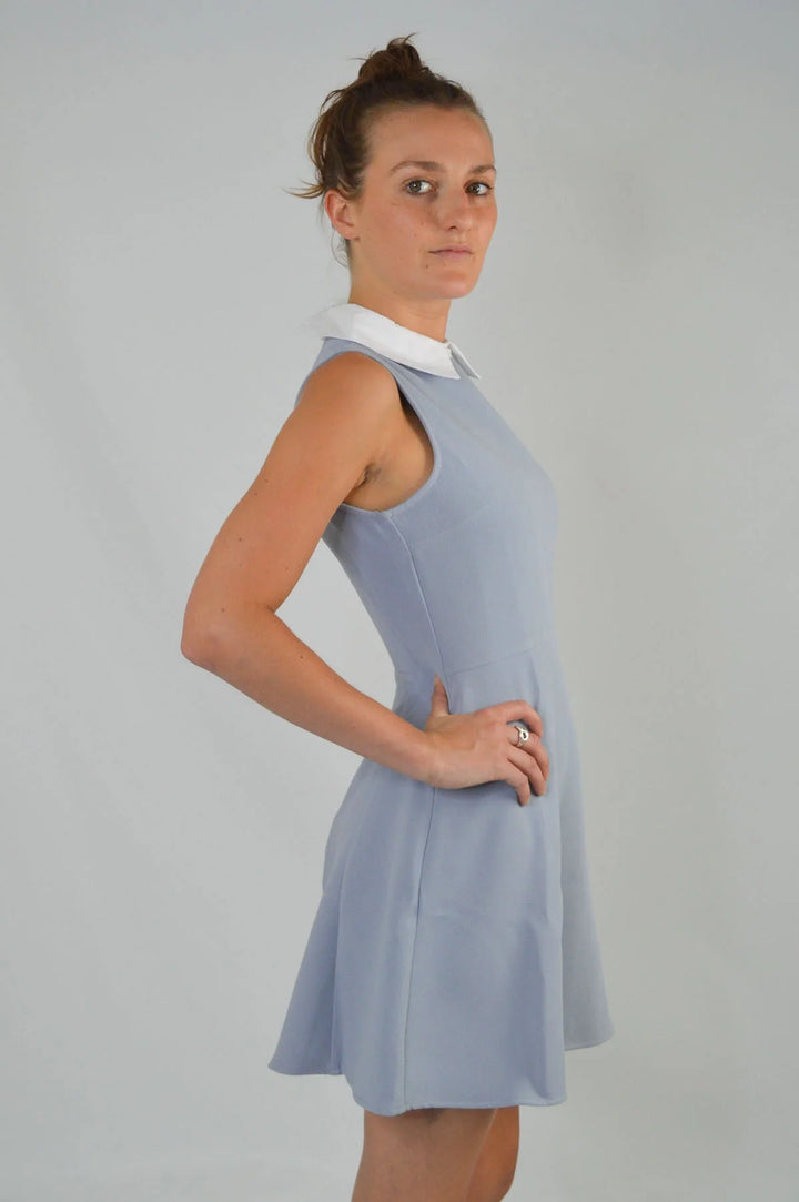 Part open back with lower zip, Vintage Style Skater Dress with Collar