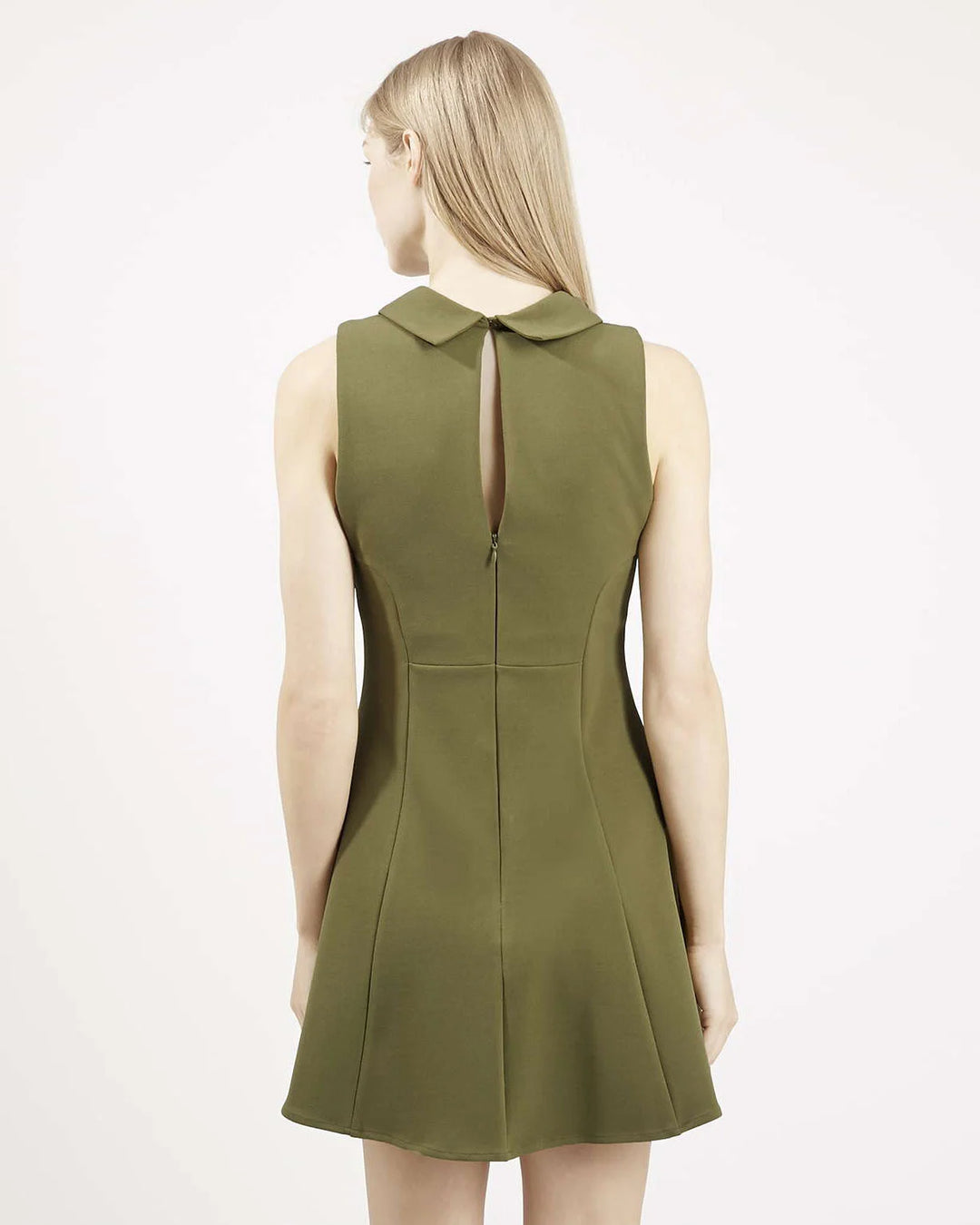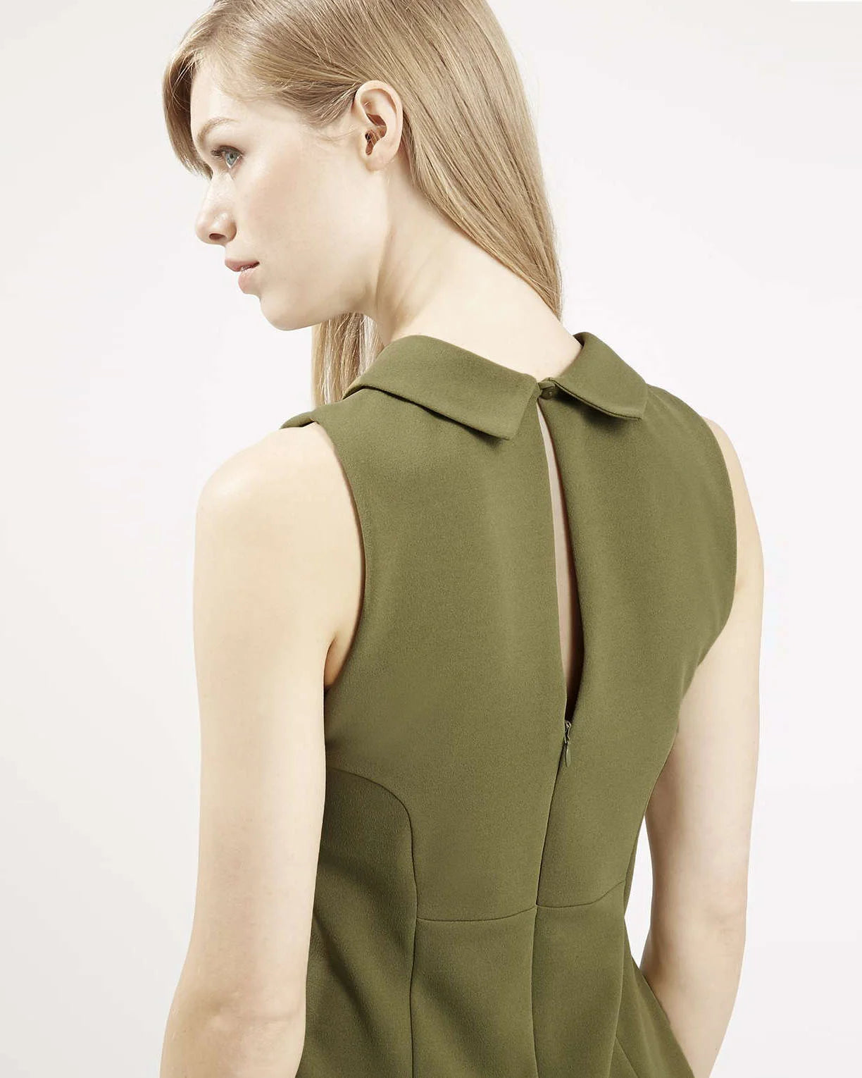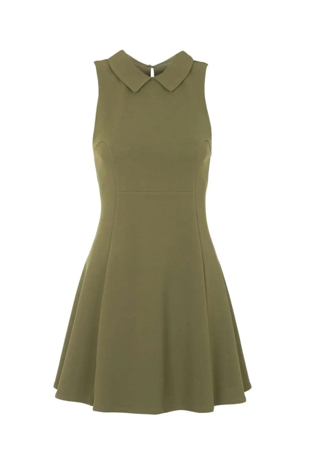 TOPSHOP Sleeveless Skater Dress with Collar Khaki / 6