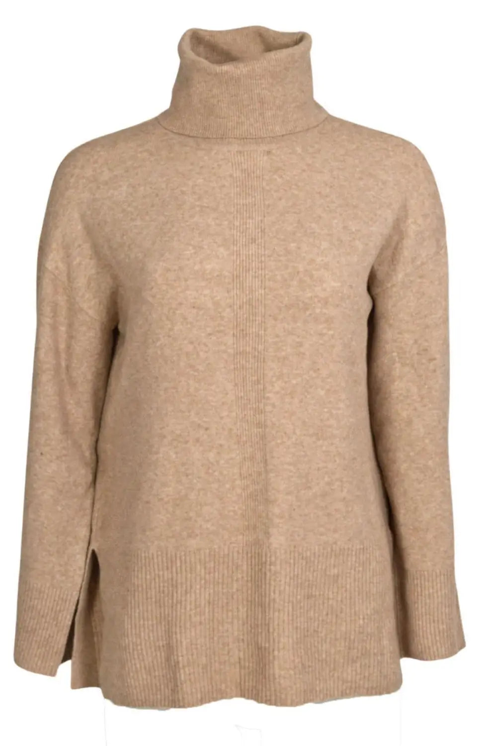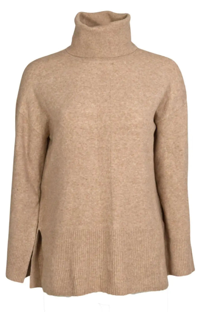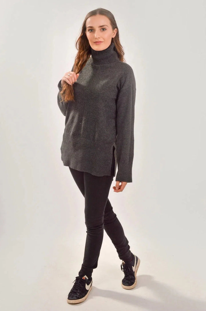 This jumper will not disappoint! With such soft acrylic knit that feels just like cashmere and is so super-soft on skin. Relaxed fit with a high roll-neck and long gentle sleeves. Finished with centre ribbed section and deep ribbed hem with side splits for extra comfort.
