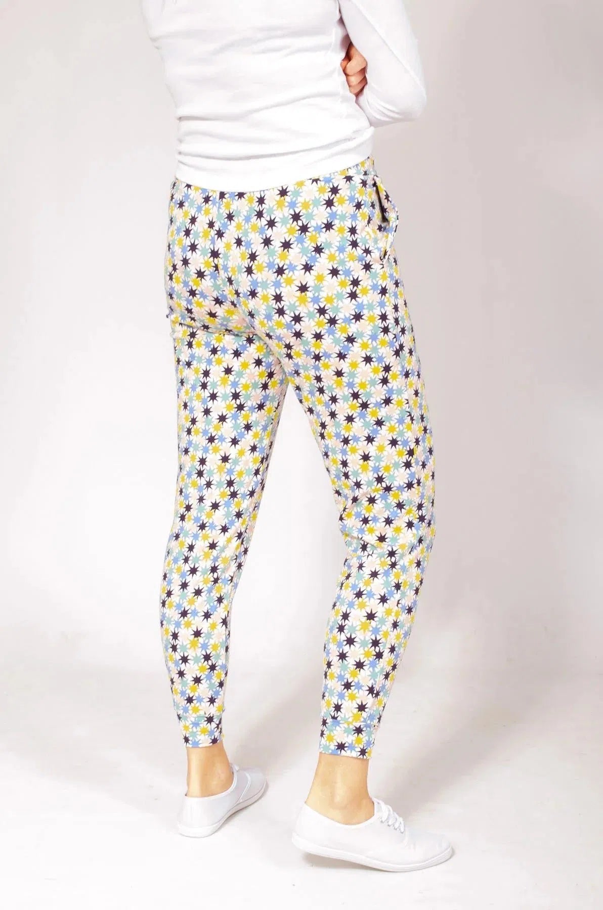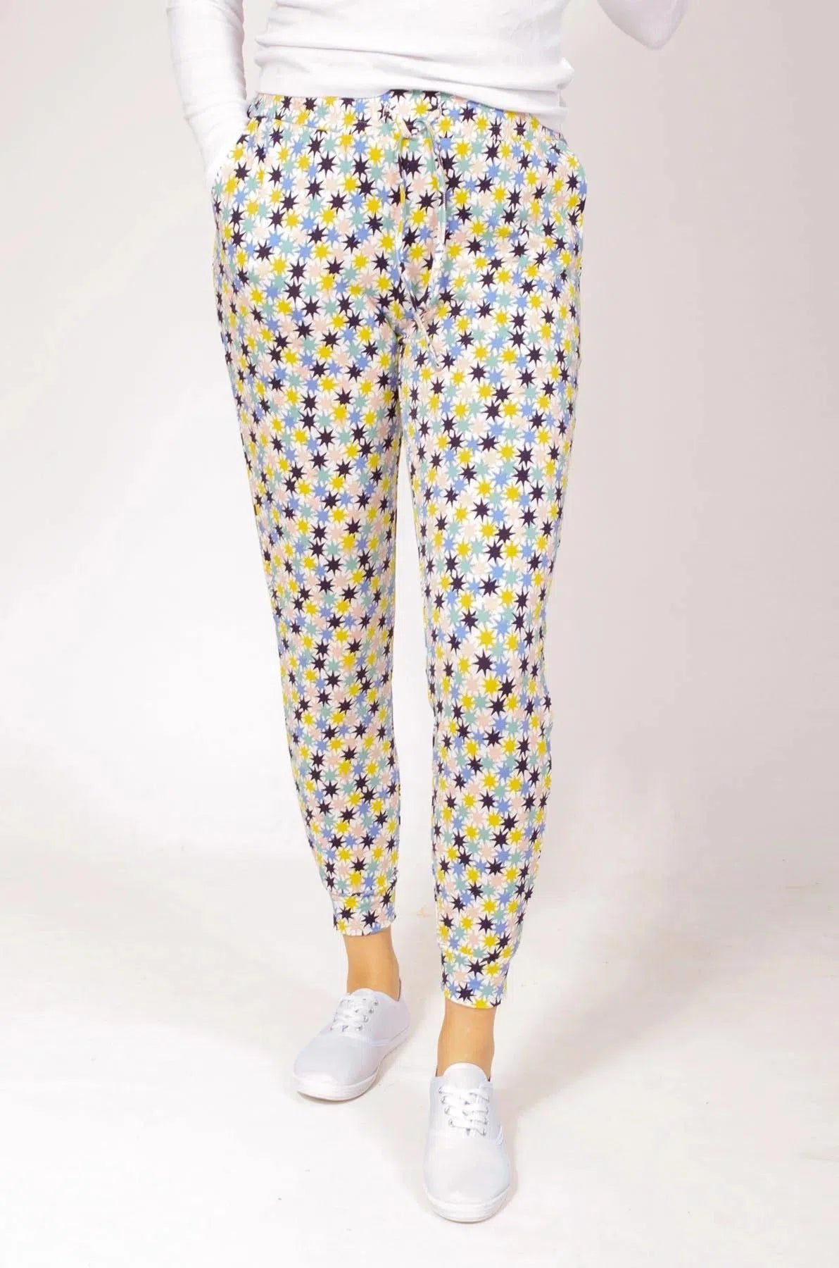 Time for some fun loungewear for those cooler evenings and weekends, these star print lounge pants are just the job. Made in a soft cotton blend these are just oh so comfy you won't want to take them off. Cut in a relaxed fit with elasticated tie waist and feature ankle cuff.